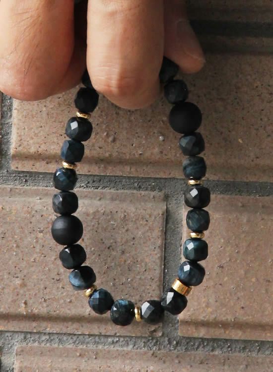 【再入荷】【数量限定テスト販売】コランコランFORCE4(フォースフォー) 8mm多面体キューブ ダークブルータイガーアイ ブレスレット