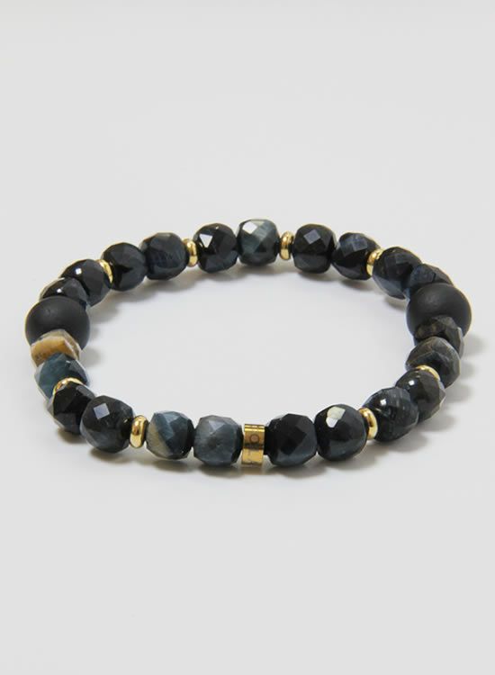 FORCE4ブレスレット 8mm多面体キューブ ダークブルータイガーアイ 【伸ばして脱着するゴムを使ったブレスレット】