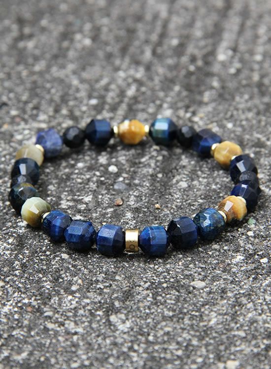 FORCE3 ブレスレット 8mmオーバル多面カット ネイビータイガーアイ ゴムタイプ