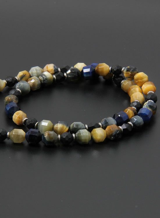 8mmオーバル対面カットが人気だったのでネックレスも組んでみました。冬は黒系の衣服を着る事が増えると思うのでネックレスが少し目立つようにMIXタイガーアイをチョイスして少し明るい石を入れていて普段使いやすいネックレスを意識して作りました。