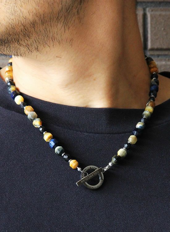 【再入荷】【数量限定テスト販売】コランコランFORCE3(フォーススリー) 8mmオーバル多面カット MIXタイガーアイ (シルバー・ブラック) ネックレス 【送料無料】