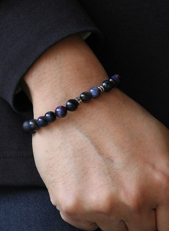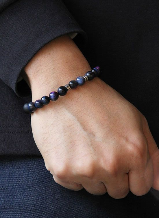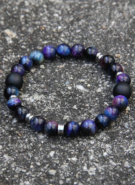 今までコランコランが採用した事がない何かキレイな石を探していたら見つけました!『ギャラクシー』これ実はタイガーアイをギャラクシーカラーに染めた石になります。すっごくキレイ!!ブルーとパープルの色の入り方が絶妙で本当に銀河みたいです。カラーは特徴的ですが8mm玉なのでスッキリ着けれて凄くステキです!!
