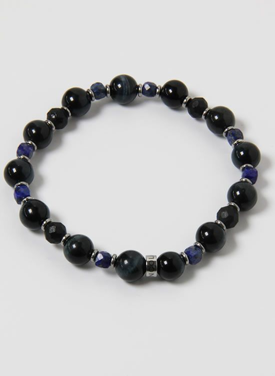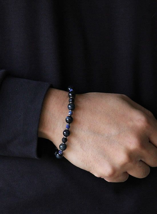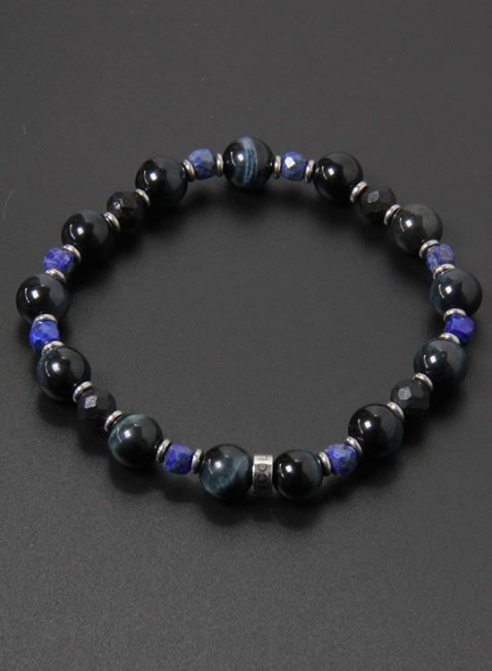 FORCE3 ブレスレット 8mmブラックタイガーアイ&4mmラピスラズリ ゴムタイプ