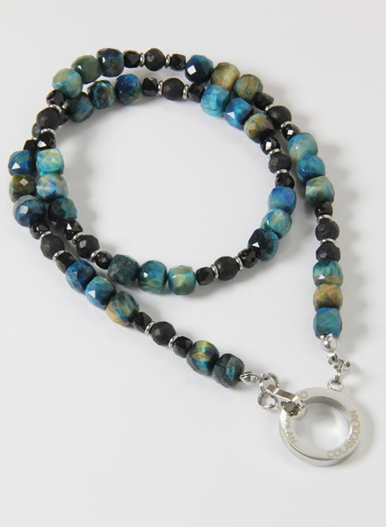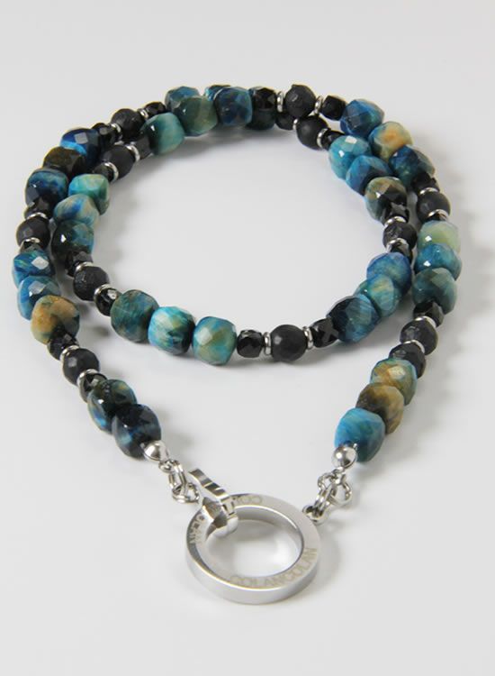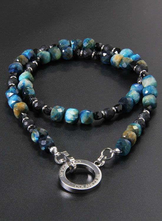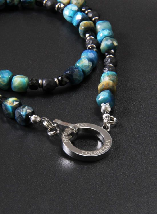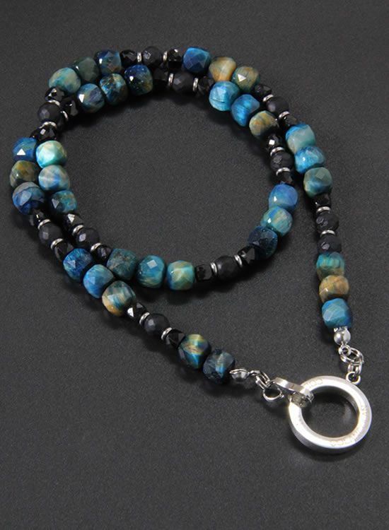 【再入荷】【数量限定テスト販売】コランコランFORCE5(フォースファイブ) 8mm多面体キューブ ブルータイガーアイ (シルバー・ブラック) ネックレス 【送料無料】