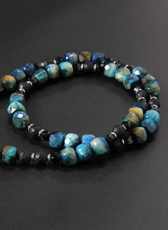 【新パーツ】【FORCE5】 8mm多面体キューブ ブルータイガーアイ (シルバー・ブラック) ネックレス