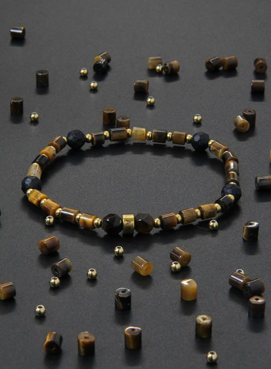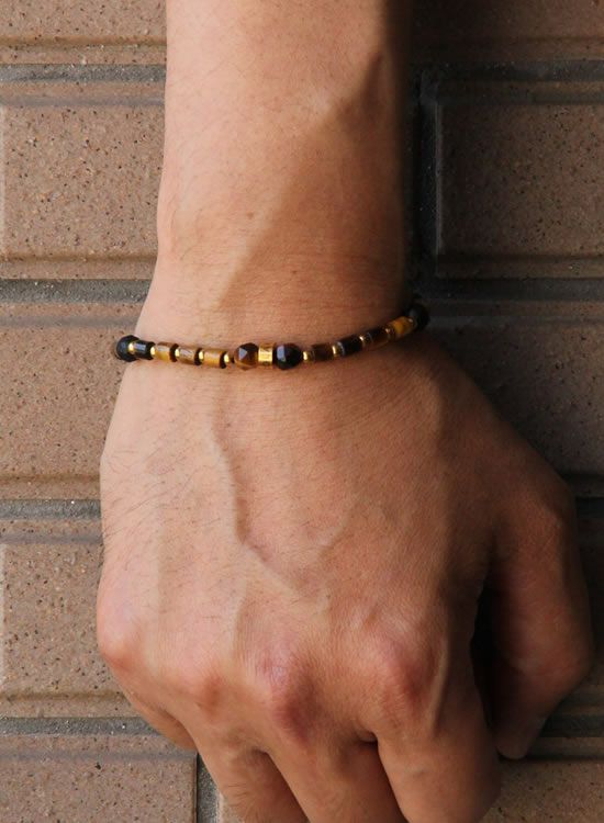 FORCE3 ブレスレット 4mm円柱 イエロータイガーアイ ゴムタイプ