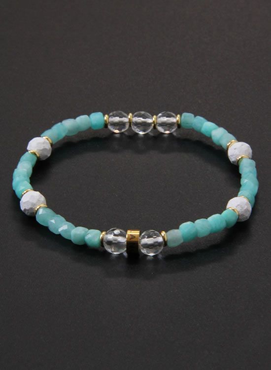 4mmキューブのアマゾナイトで爽やかなブレスレットに仕上げました。気温が上がるほど人気が出そうな爽やかブレスレットです。