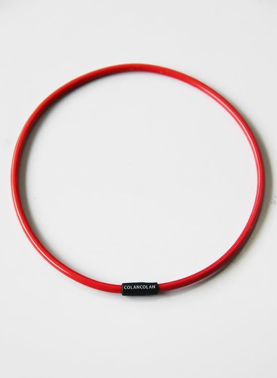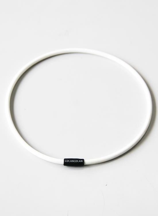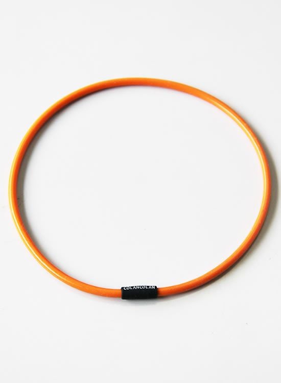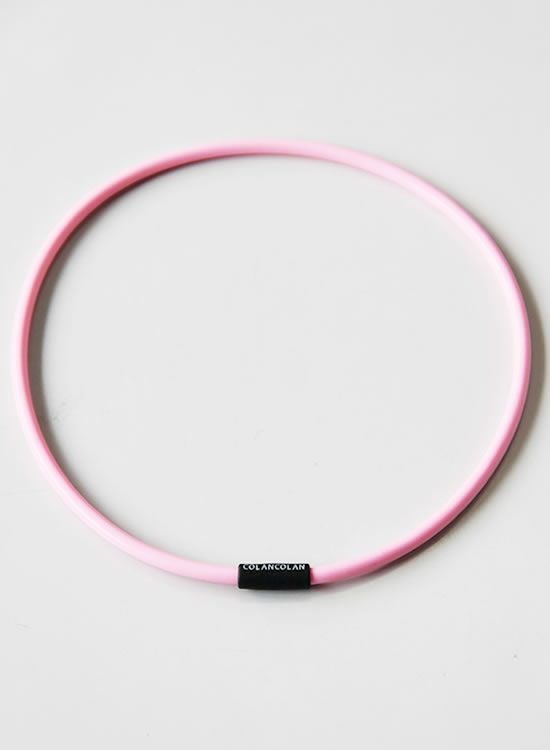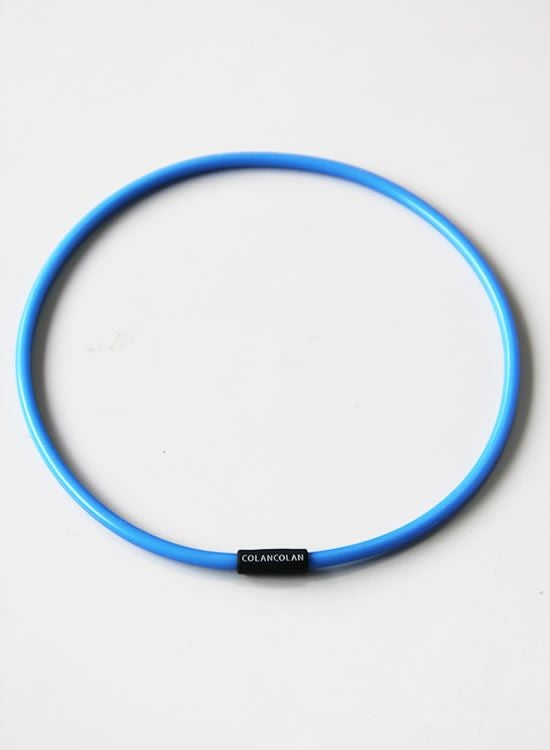 コランコランの鉱石パウダーをシリコンチューブに封入した。大量のマイナスイオンを放出させる事を1番に考えたプロアスリート仕様のネックレス