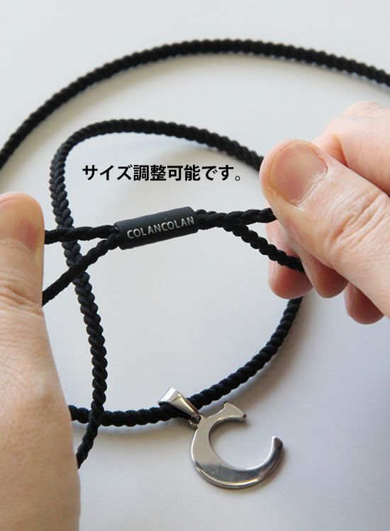 コランコランヴァリアスを使ったサイズ調整できるネックレスです。大量のマイナスイオンも放出しているので普段使いしたいリラックスアクセになります。チャームの『C』はCOLANCOLANの『C』