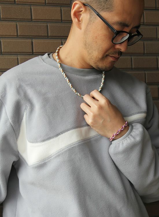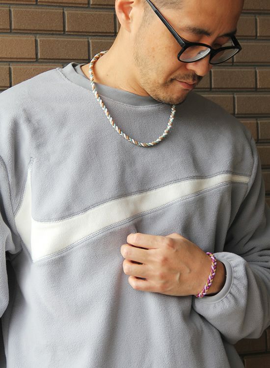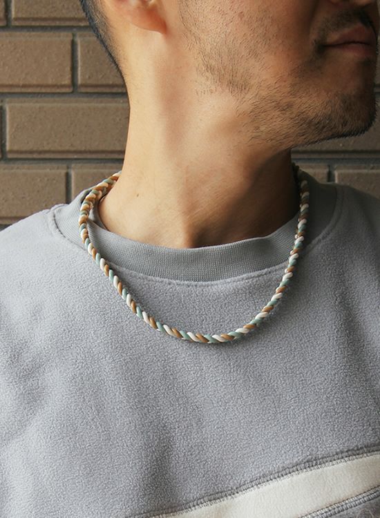モデルは174㎝65キロです。ネックレスはLLサイズ55㎝でブレスレットはMサイズ18.5㎝を着用しています。