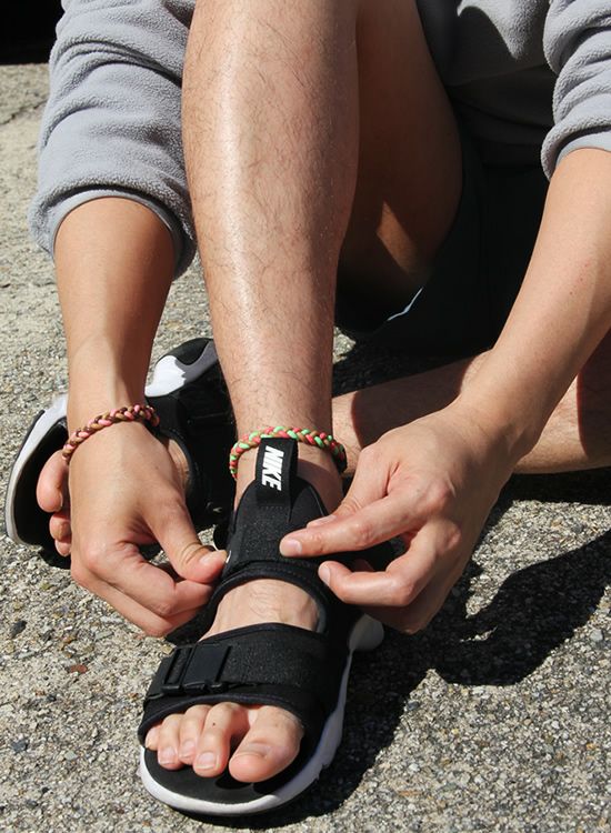 モデルは174㎝65キロです。アンクレットはSサイズ23㎝でブレスレットはMサイズ18.5㎝を着用しています。