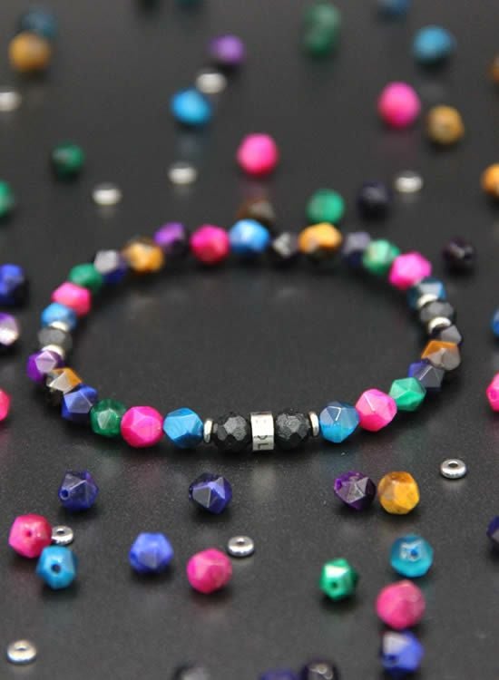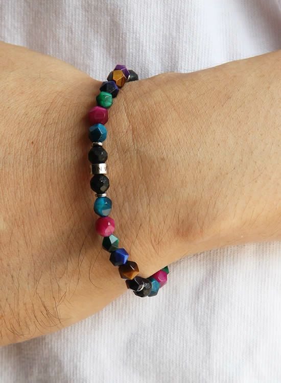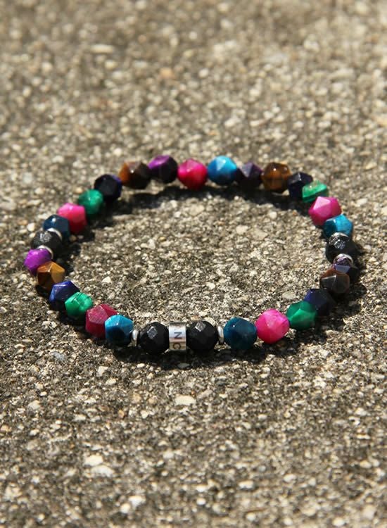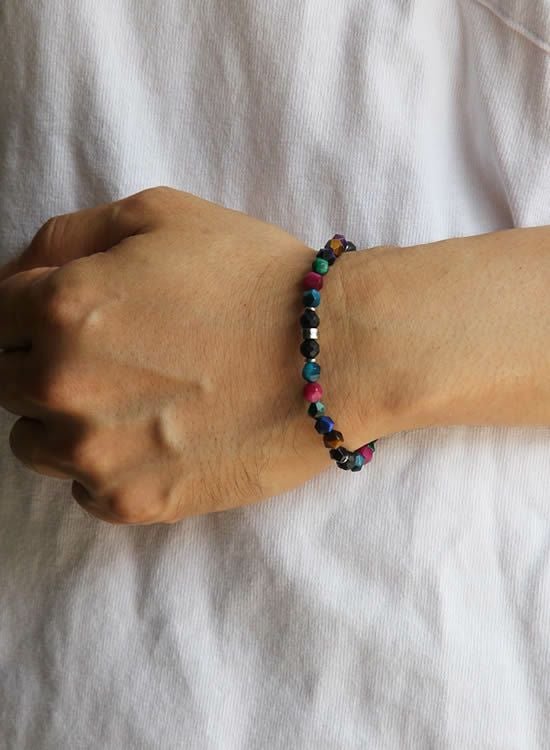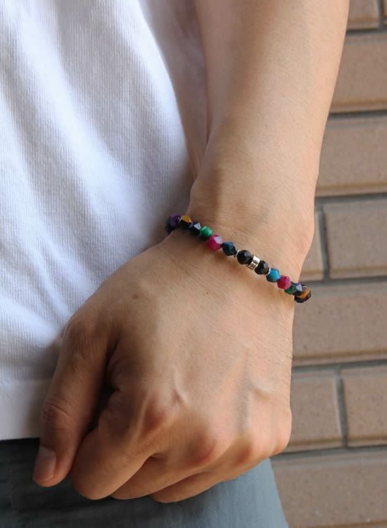 FORCE3 ブレスレット 6mm角レインボー ゴムタイプ