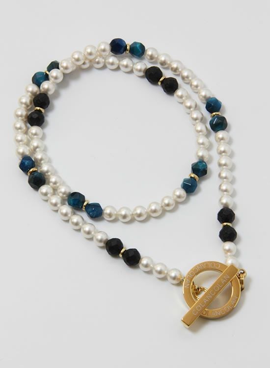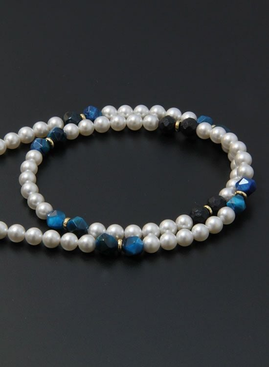 【COLANCOLANのFORCE3の新作】5mm貝パール(志摩産)&角ブルータイガーアイ ネックレス