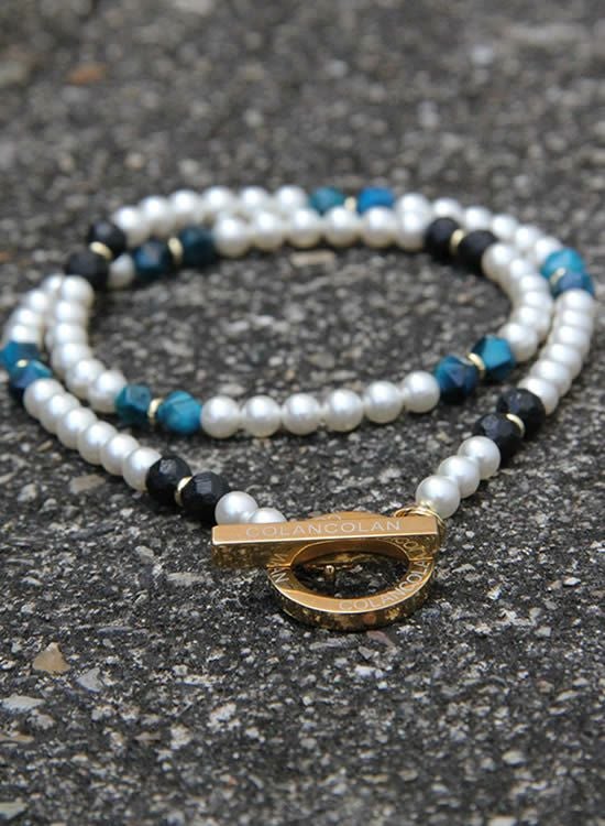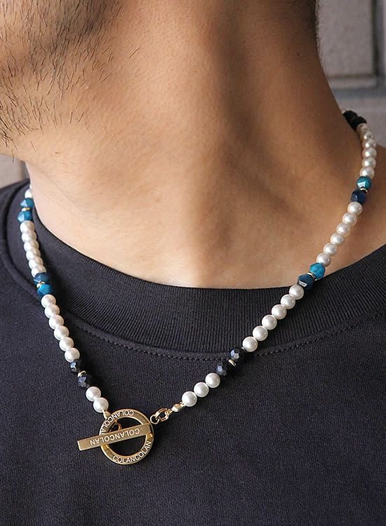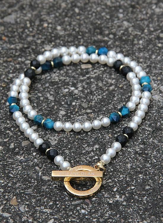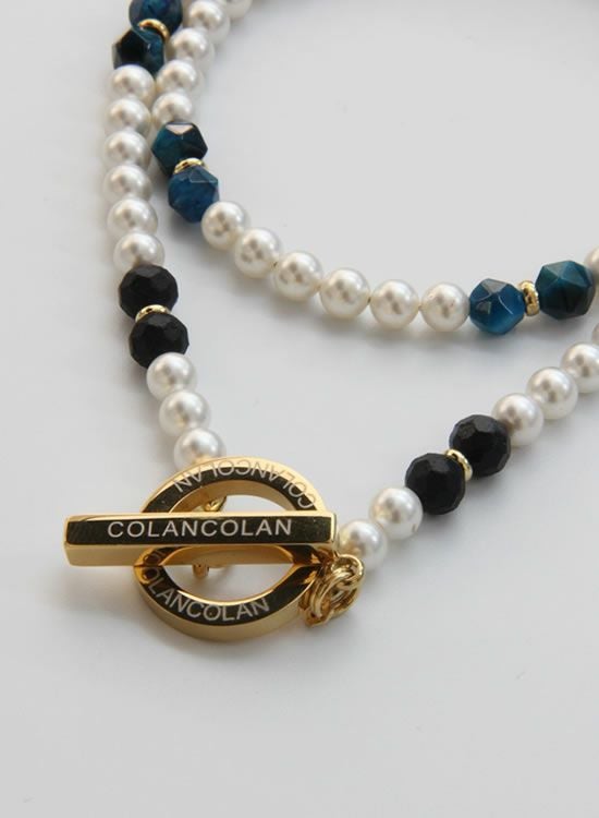 【数量限定テスト販売】コランコランFORCE3(フォーススリー) 5mm貝パール(志摩産)&角ブルータイガーアイ (ゴールド・ブラック) ネックレス 【送料無料】