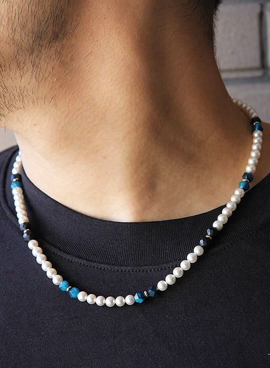 弊社スタッフの親戚が志摩市で作っていた『貝パール』を少しだけ仕入れさせてもらったので数量限定となります。今回の新作はパールと角ブルータイガーを合わせてネックレスにしました。パールにブルータイガーアイがとても合います!!