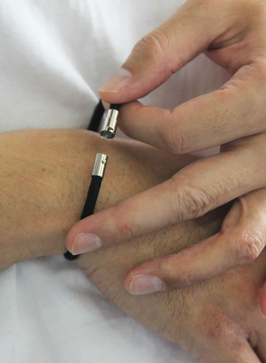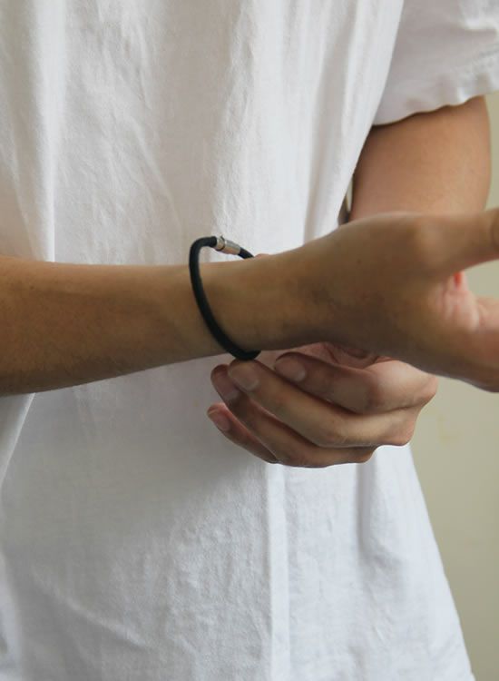 DEOブレスレットはシンプルなデザインなのでパーツもなるべくシンプルな物を採用しました。中に磁石が入っているのでスポッとはめてクルっと回して固定して下さい。
